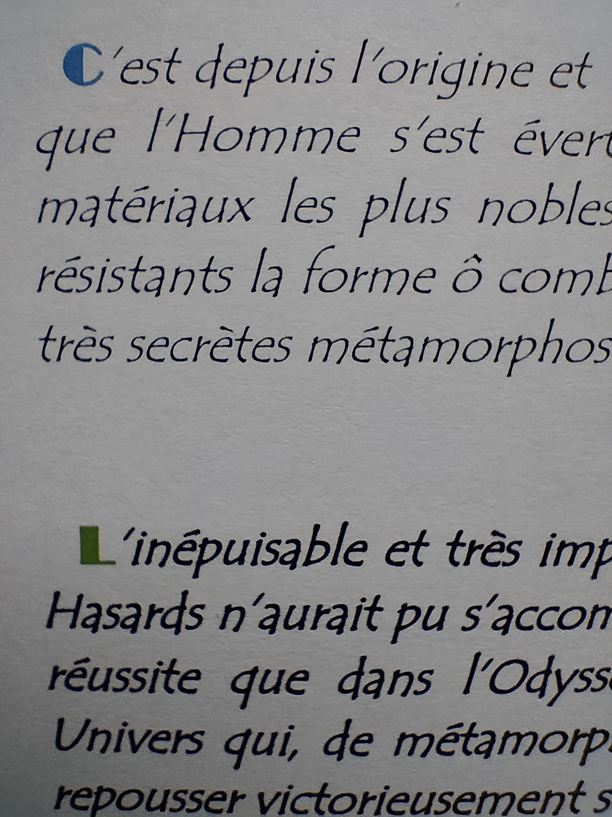 "Mai que cet habit pèse avec son accent grave sur votre dos courbé de sévère censeur lorsqu'à l'heure critique vous montrez la sanction et qu'un lent mouvement désignant la maxime que vous fîtes graver sur le fronton du temple de votre voix profonde comme un gouffre creusé vers les eaux telluriques vous en marquez le sens"