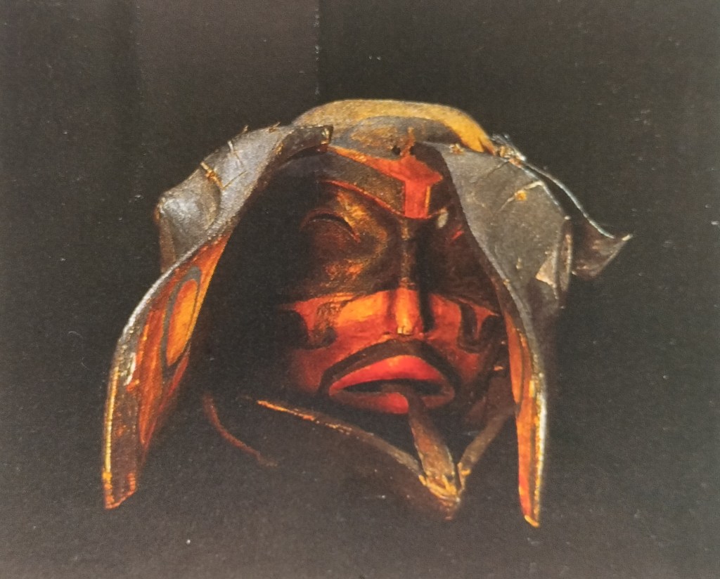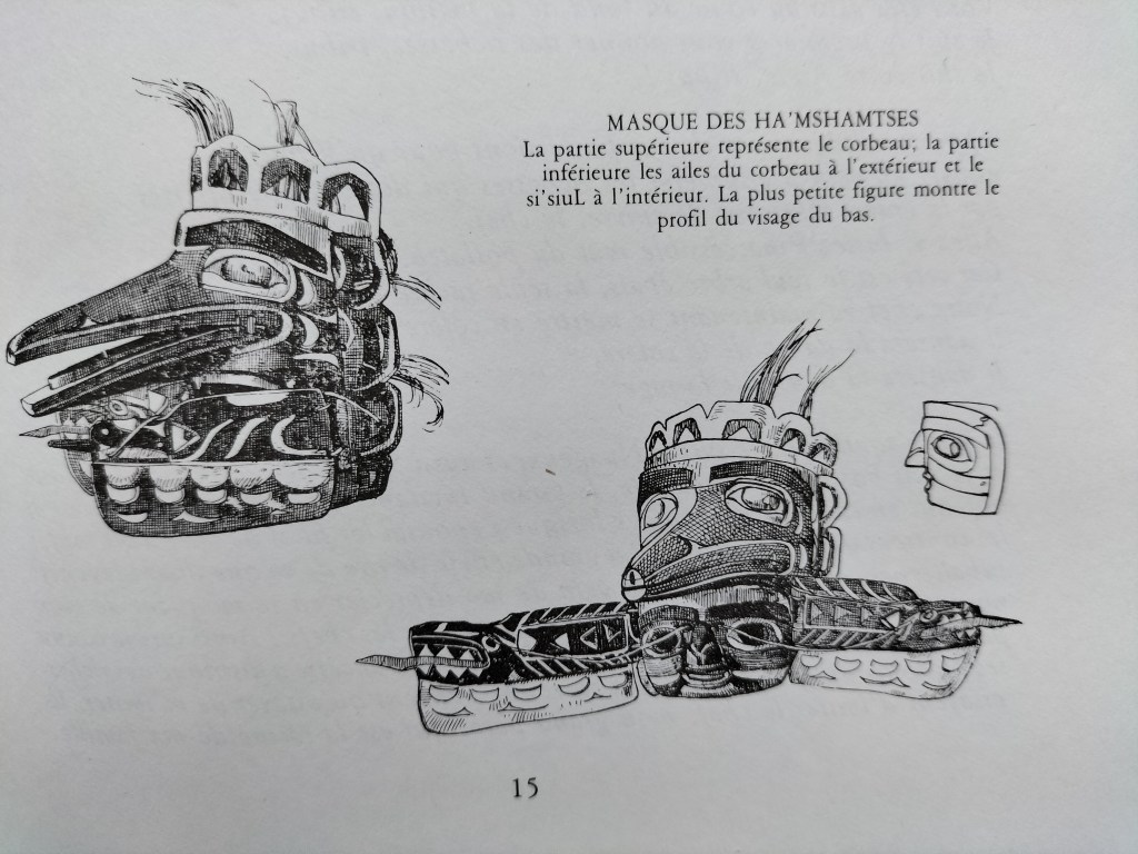 Mais revenons à notre texte et aux masques à transformations. Dans la citation choisie par Breton Lévi-Strauss rapporte les conclusion de Leonardo Adam concernant certaines caractéristique communes entre cet art de la Côte Nord-Ouest et celui de la Chine archaïque. Cette analyse met en évidence les éléments susceptibles d’entrer dans une logique de transformations et on sait que c’est ce genre de procédures que Lévi-Strauss cherchera à découvrir dans les corpus de mythes. Breton n’ignore pas non plus le contexte historique, culturel et géographique avec ses oppositions tranchées et ses hiérarchies. Remarquons cependant pour finir que, si Breton souligne l’intérêt de telles approches analytiques, il termine sa présentation en s’efforçant de revenir à la charge émotionnelle, affective et de fulgurance imaginaire contenue dans ces objets susceptibles de nous apparaître ainsi comme les messagers d’une sorte d' »ancêtre-Protée »: « ils embrassent l’un des plus grands vertiges humains en réalisant le transformisme non plus seulement en pensée mais en action. »