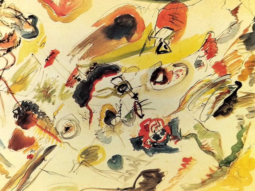 Le même n°1 propose un article d’Ingrid Ebertz mettant en relation Breton et Kandinsky: Kandinsky, Breton et le modèle intérieur. Il s’agit en effet d’une enquête visant à établir un lien entre la notion de « sens intérieur » mise par Kandinsky au fondement de sa conception de l’art et de la création, telle que développée dans Du spirituel dans l’art, et celle de « modèle purement intérieur » introduite par Breton dans La révolution surréaliste. Breton n’ayant jamais reconnu explicitement la dérivation de son expression à partir des conceptions développées par Kandinsky dans son manifeste, l’intérêt de cette enquête est de recueillir un certain nombre de pièces à conviction et de rendre convaincante l’idée de cette filiation en en situant le contexte et en en éclairant les fondements philosophiques. Il s’agit dans un premier temps d’établir la nouveauté de l’expression de Kandinsky pour en dégager la force de rupture. Le sens intérieur permet de rompre avec une certaine conception de la peinture « rétinienne » tout en évitant de revenir à des positions idéalistes. C’est tout l’enjeu qui se dissimule derrière le terme de « spirituel » (« Geistige »). L’auteur de l’article rappelle le rôle de la pensée de Nietzsche sur celle de Kandinsky et montre que l’enjeu de ce sens intérieur correspond à la possibilité re renouer avec un sens originaire, premier, antérieur aux habitudes culturelles et aux découpages linguistiques: « On voit que la perspective kandinskienne de 1910 dépasse la perspective saussurienne de 1916: la distinction de la parole et de la langue se limite au système socio-symbolique, tandis que le sens intérieur s’étend aux possibilités de la langue en-deça de la grammaticalité et de la signification, et met en question la position de l’objet univoque ainsi que celle du sujet unitaire.« (P.73)