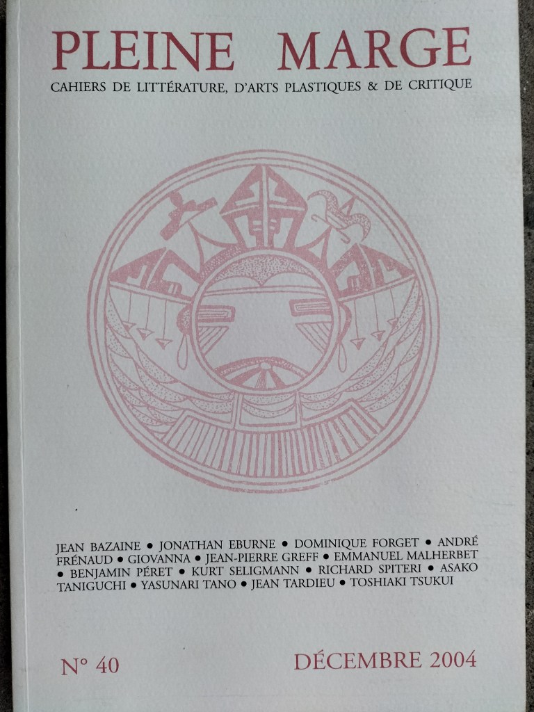 L’histoire du Surréalisme est inséparable de celle des revues grâce auxquelles il s’est fait connaître et s’est propagé, livrant plus d’une bataille. Depuis la revue Littérature fondée en février 1913 par Aragon, Breton et Soupault jusqu’à L’archibras, dont le premier numéro sort moins d’un an après la mort d’André Breton le 28 septembre 1966, numéro dans lequel Jean Schuster écrivait: « des divers écueils qu’il nous faudra éviter, le plus dangereux, le plus menaçant est dans l’éventualité d’une survie purement formelle, la survivance du signe à la chose signifiée, tant de fois dénoncée par Breton comme la pire maladie de l’esprit, risquant de frapper le Surréalisme même. Je ne vois pas quel effet vaguement conjuratoire nous pourrions espérer de la dissimulation de ce péril. Inversement, la conscience que chacun de nous en prendra ne peut manquer de multiplier les initiatives, d’éveiller le pouvoir créateur, de faciliter le passage de l’informulé au formulé. » Publiée elle-même à partir de 1985 et jusqu’en 2009 la revue Pleine Marge n’a-t-elle pas participé exemplairement de ce pouvoir créateur?